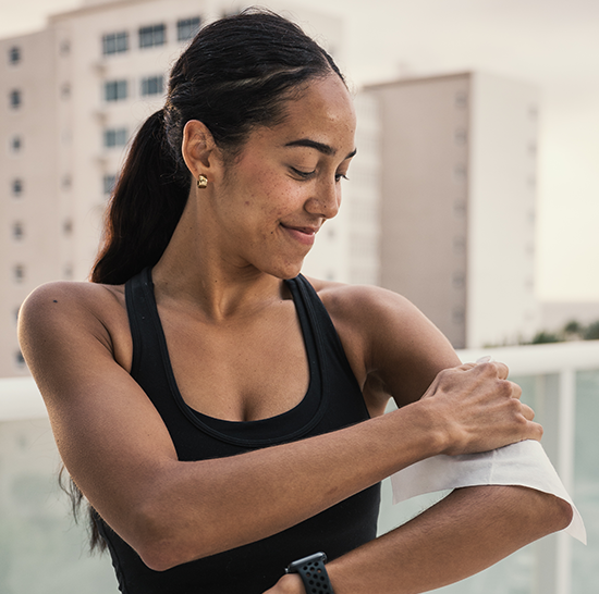 Leave your skin feeling cleansed, moisturized and renewed every time you work up a sweat without ever having to wash your face. With charcoal powder, aloe vera and cucumber, this dual-sided wipe first removes sweat and dirt then soothes and hydrates your skin.